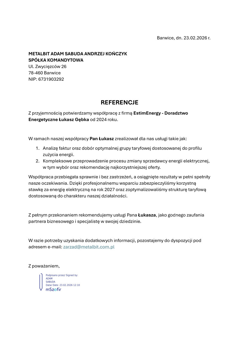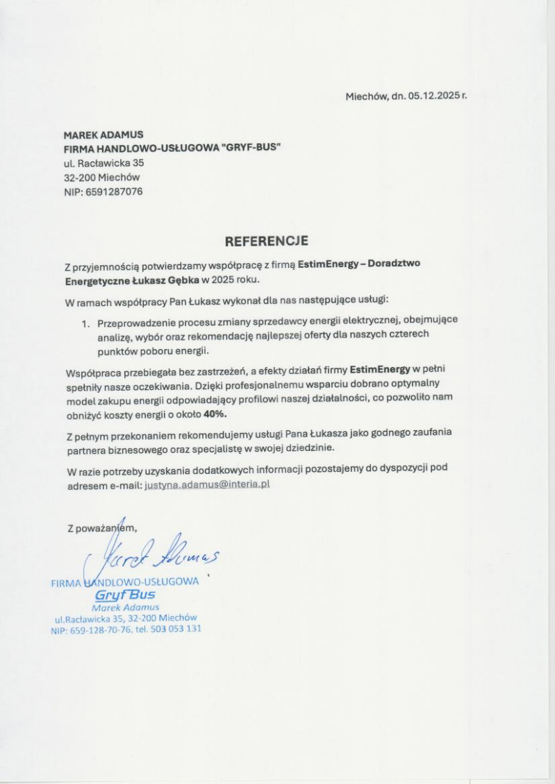 Kiedy zoptymalizujesz wydatki na energię, koszty operacyjne w Twojej firmie automatycznie spadną.Dzięki temu zaoferujesz konkurencyjne ceny swoim klientom lub zwiększysz marże produktów i usług. Nie musisz mieć specjalistycznej wiedzy i ciągle monitorować rynku energii. Usługi doradztwa energetycznego w zakresie energii i gazu odciążą Cię w sprawach związanych z energetyką. Ty w tym czasie skupisz się na tym, na czym znasz się najlepiej, czyli na ulepszaniu własnego przedsiębiorstwa. Skontaktuj się ze mną i dołącz do zadowolonych klientów, którzy już oszczędzają, a z nadwyżek pieniędzy finansują nowe inwestycje w swojej firmie.